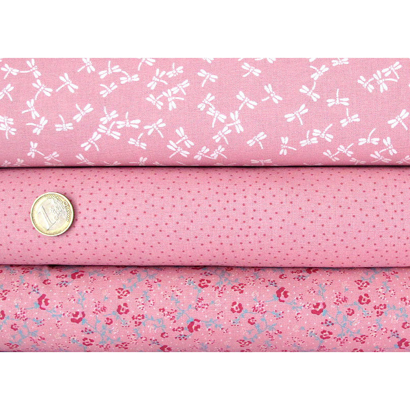 ein tolles Stoffpaket mit 3 Baumwollstoffen in antikrosa - bedruckt mit Blumen und Libellen dazu Pünktchen - alle Stoffe von Westfalenstoffe zertifiziert nach ÖkoTex Standard 100 und in Europa hergestellt
