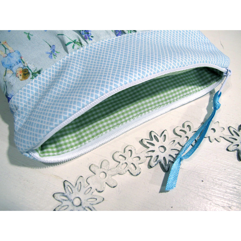 Die Kosmetiktasche ist aus einem sehr hochwertigen Baumwollstoff mit dem beliebten Elfendruck von Daniela Drescher gefertigt und mit einer Samtborte verziert. Außerdem ist die Kosmetiktasche mit einer Vlieseinlage verstärkt. Das verleiht ihr zusätzliche Stabilität.
