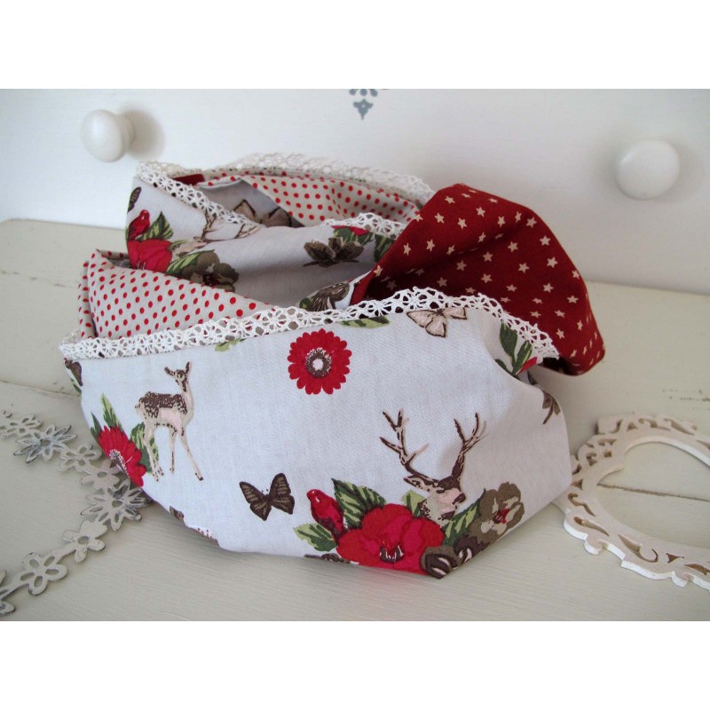 Schneiden Sie die Stoffe in den oben angegebenen Maßen zu. Legen Sie die beiden Stoffe für die Außenseite rechts auf rechts und nähen die schmale Seite zusammen. Einmal aufbügeln und anschließend Innenseite und Außenseite rechts auf rechts legen. Falls die Innenseite nun etwas länger als die Außenseite ist, diese entsprechend einkürzen. An den Längsseiten heften oder stecken und beide Seiten – also oben und unten – zusammennähen. Auf links belassen und in den „Tunnel“ greifen um so das untere Ende nach oben zu führen. Aufpassen, dass sich nichts verdreht. Nun liegen beide Enden rechts auf rechts aufeinander. Auf der einen Hälfte die Innenseite und auf der anderen sollte der Außenstoff liegen. Bitte wieder heften oder stecken. Bis auf eine Wendeöffnung schließen. Immer Nahtanfang und Ende vernähen. Alles umdrehen und die Öffnung mit kleinen Stichen zu nähen. Fertig