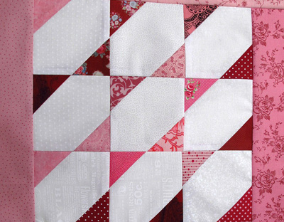 Reihe für Reihe zusammengenäht. Dann die so entstandenen Streifen untereinander zusammengefügt. | |
