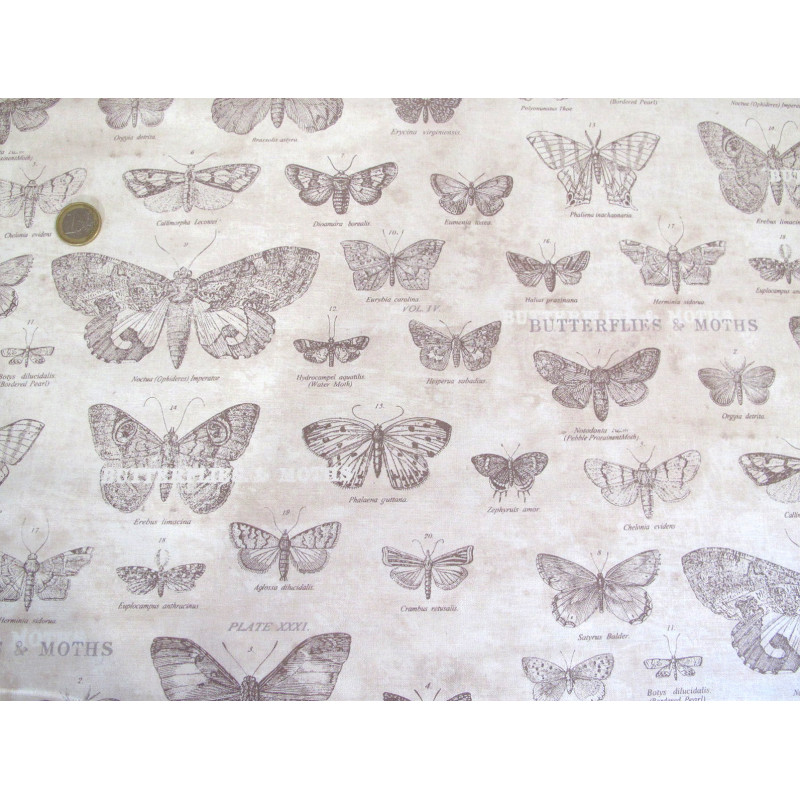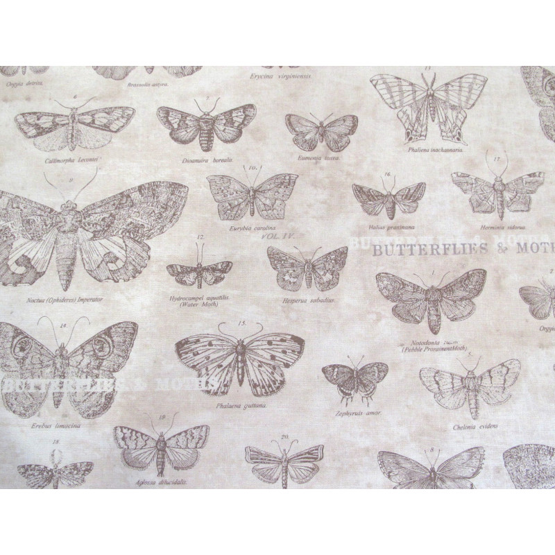 Design: Schmetterlinge, Motten mit Bezeichnung in braun/ taupe auf dezent marmoriertem Grund
