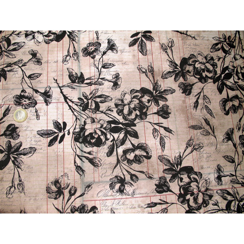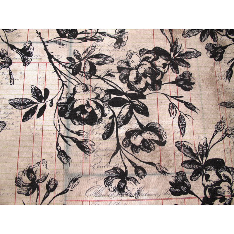 Design: große Blumen in schwarz vor Rechnungsseiten in hellbraun/ vintage photo