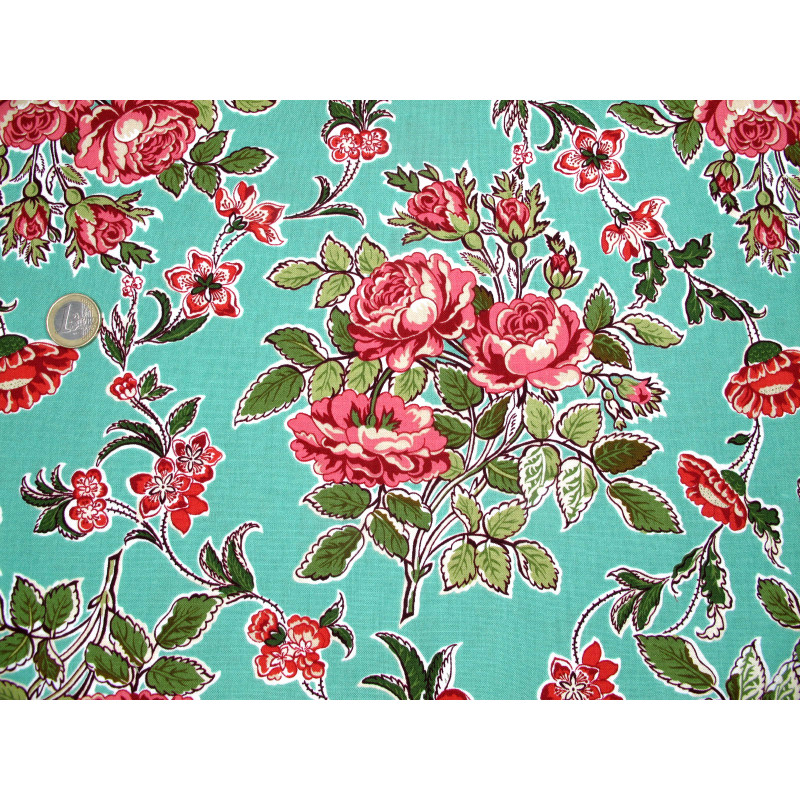 Design: Rosen und Blumen in rot pink bordeaux und dunkelgrün auf mint