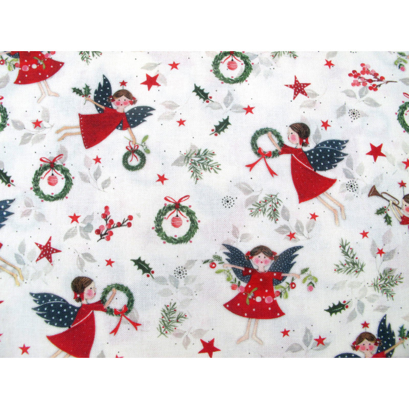 Der Baumwollstoff Weihnachtsengel ist eine liebevolle Einladung in eine Welt voller Licht, Leichtigkeit und weihnachtlicher Freude. Handgezeichnet von Kerstin Heß zeigt er fröhliche Engel in roten Kleidern, die mit Trompeten, Kränzen und Wintergrün durch ein helles, festliches Muster tanzen. Die kleinen Engel mit gepunkteten Flügeln wirken beinahe lebendig. Der klare Hintergrund mit dezenten Elementen lässt die Farben strahlen und verleiht dem Design eine leichte, fröhliche Ausstrahlung ideal für kreative Projekte rund um die Weihnachtszeit. Für Patchworkarbeiten wie eine weihnachtliche Decke, Tischläufer oder Kissenhülle. Aber auch für Kinderschürzen, Adventskalender oder liebevolle Geschenkverpackungen lässt sich der Baumwolldruck vielseitig einsetzen und bringt eine heitere, herzliche Note in jede weihnachtliche Nähidee.