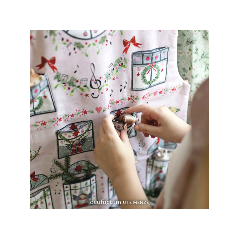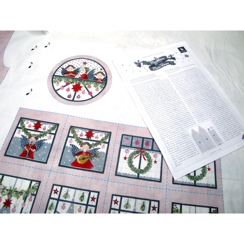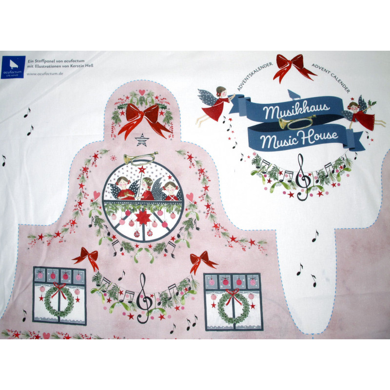 Ein zauberhafter Adventskalender / Musikhaus zum selber nähen. Ein toller Hingucker der jedes Jahr aufs neue erfreut - also wirklich nachhaltig - zum befüllen mit kleinen Überraschungen oder persönlichen Botschaften. Mit viel Fantasie lassen sich aber auch noch andere Gestaltungen daraus zaubern. Zum Beispiel eignet sich das Haus auch als Applikation mittig auf einem Weihnachtsplaid, oder wie wäre es das Haus als üppig gefülltes Kissen im Advent auf der heimischen Couch oder im Bett zu platzieren?Das Stoffpanel enthält Schnittlinien für schnelles und einfaches Nähen sowie eine Anleitung zur Anfertigung des Adventskalenders in deutsch und englisch. Die 24 Fenster werden als Taschen aufgenäht. Ergibt 24 Möglichkeiten für kleine Überraschungen.Zusätzlich wird noch Volumenvlies zum Aufbügeln von 2 x 50 x 140 cm, Gewebeeinlage von 15 x 15 cm und 2 Rundhölzer von 0,7 x 38 cm benötigt.Farbe: rosa rot grün anthrazit