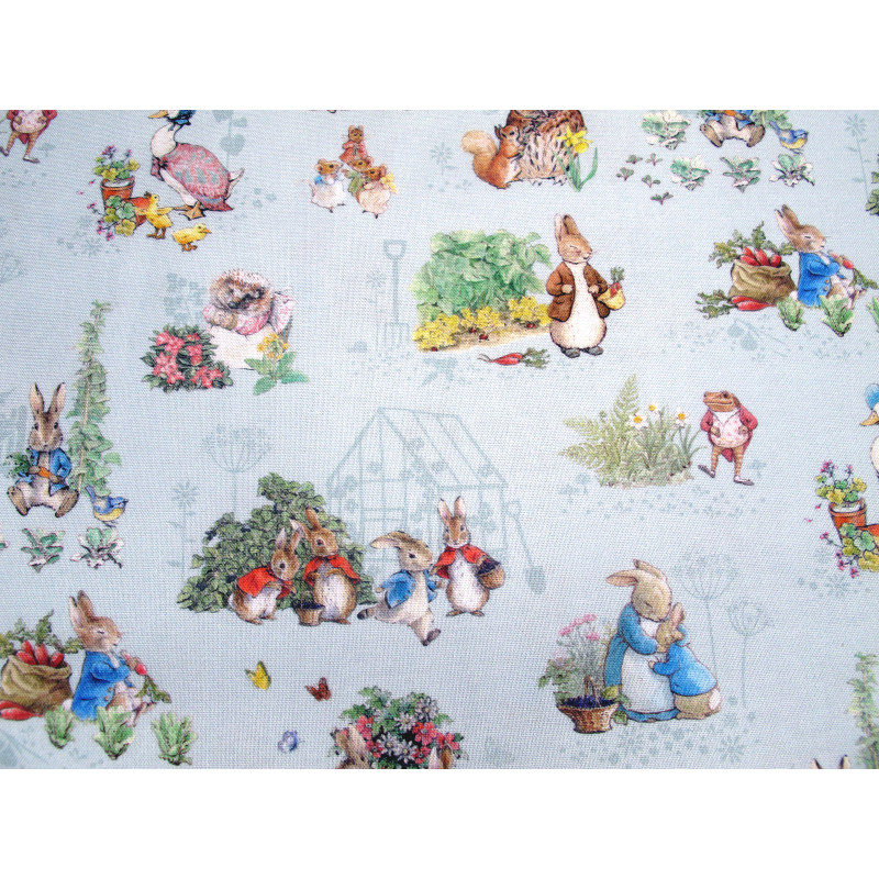 Design: Hase, Igel, Frosch, Ente, Gans nach Beatrix Potter auf hellblau