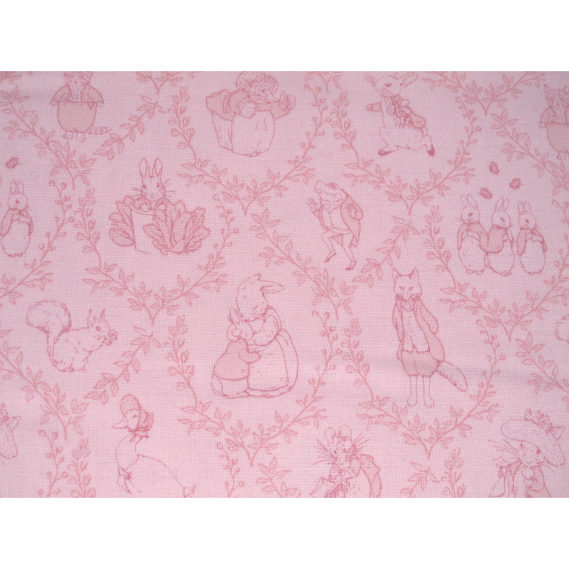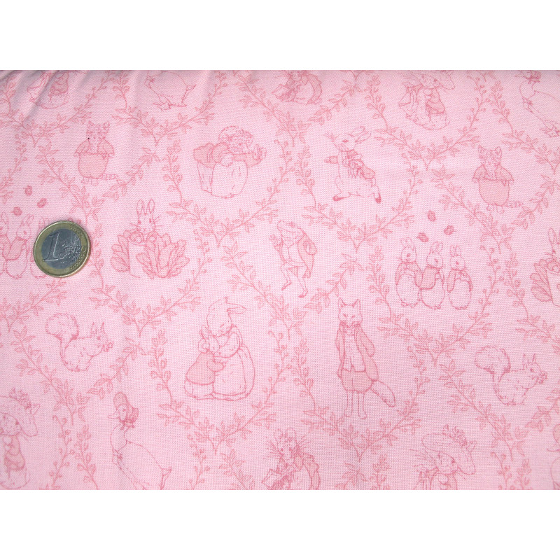 Design: Hase, Igel, Frosch, Ente, Gans nach Beatrix Potter zwischen Ranken in rosa - Ton-in-Ton