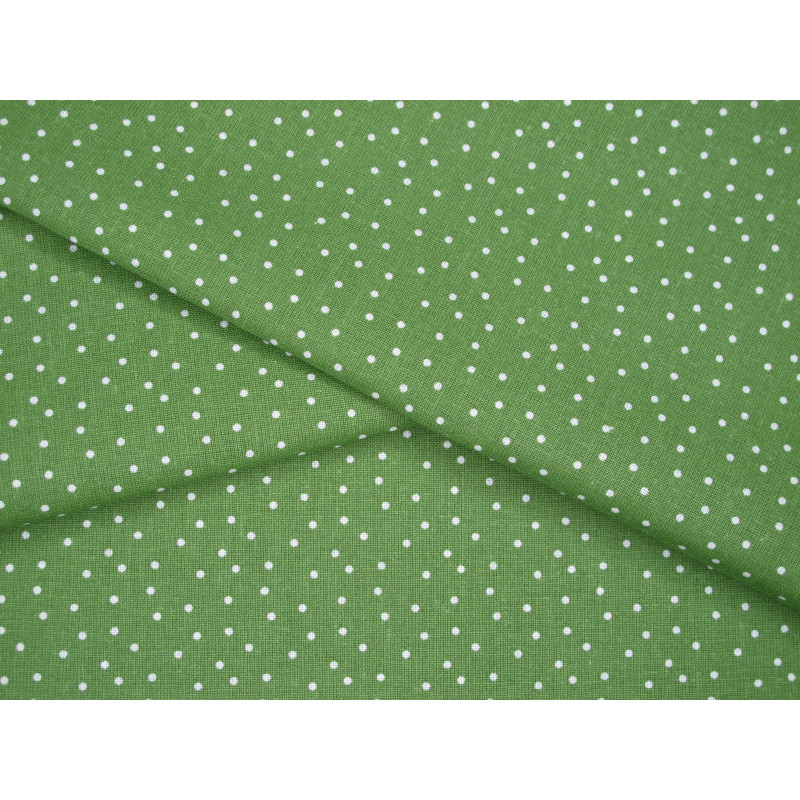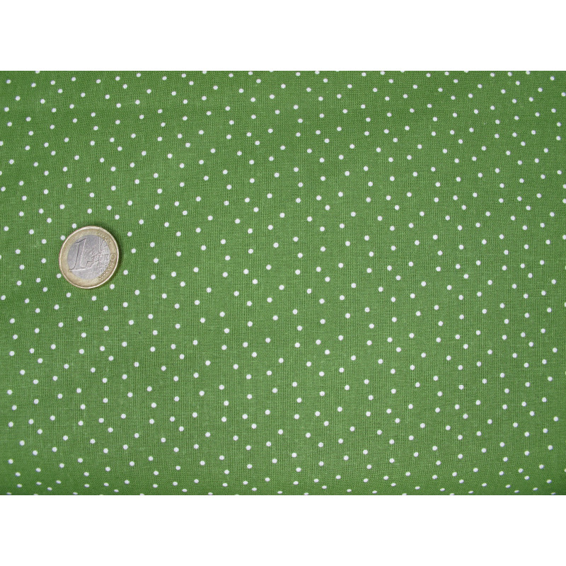 Der Baumwollstoff ist bedruckt mit kleinen Punkten ca. 2mm in weiß auf grün.