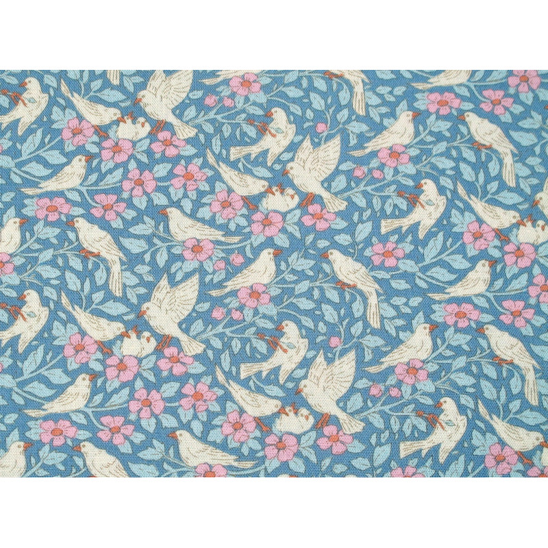 Design: Tauben mit Blumen und Blättern auf rauchblau