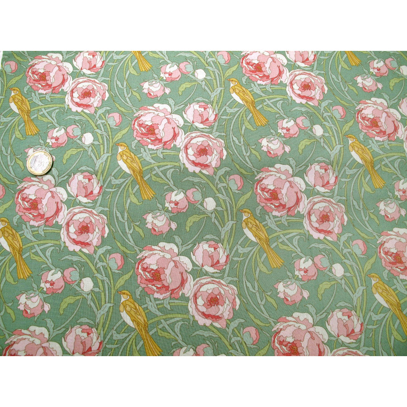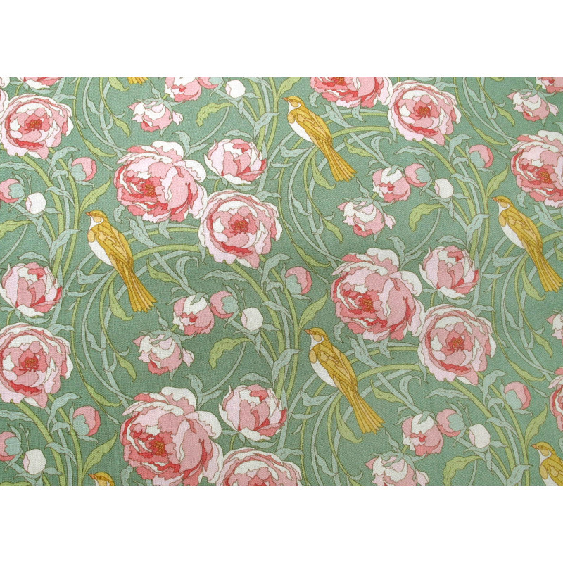 Design: Pfingstrosen und Vögel auf salbei