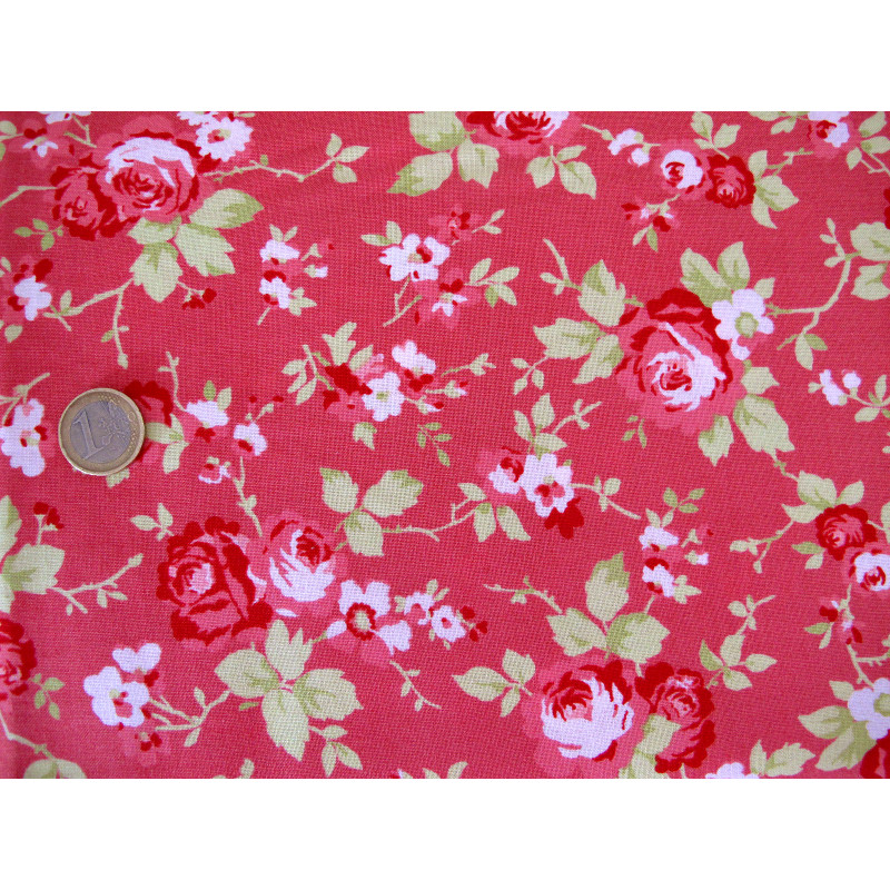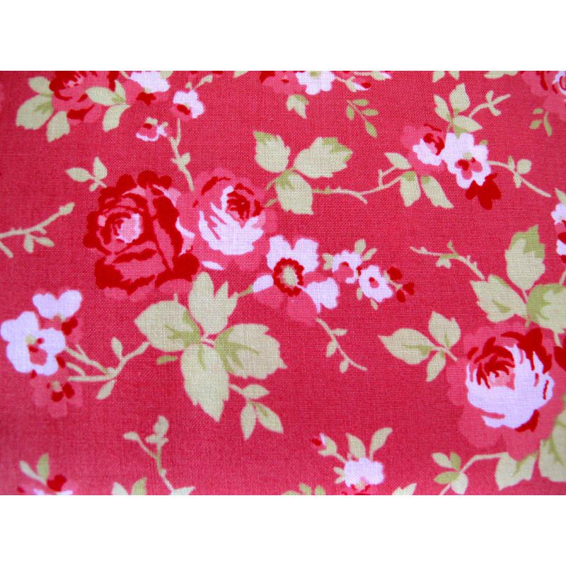 Design: Rosenranken in himbeerrot, rosa und hellgrün auf dunkelrosa Grund