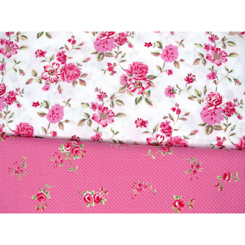 die Stoffe im Stoffpaket sind gewebt und bedruckt mit Rosen in rosa pink mit grün und weiß - beide Stoffe von Westfalenstoffe und zertifiziert nach ÖkoTex Standard 100 und in Europa hergestellt - perfekt aufeinander abgestimmt