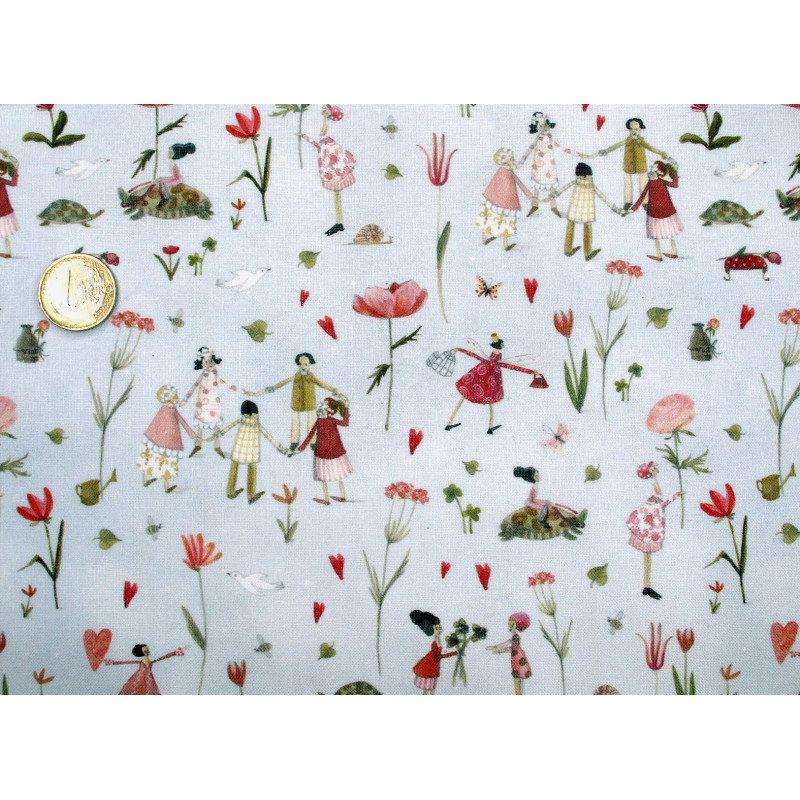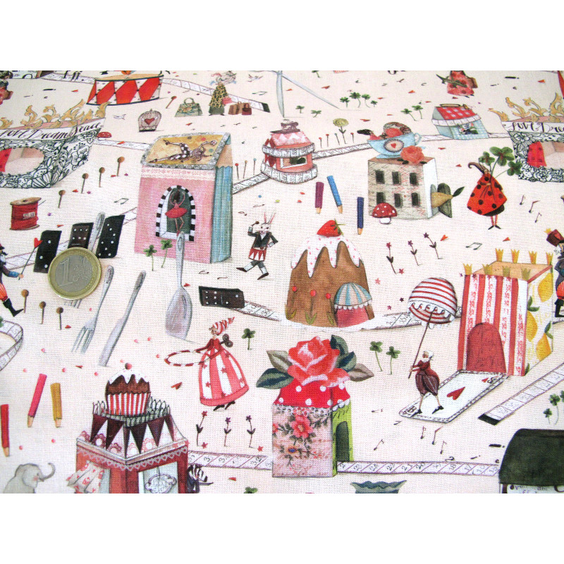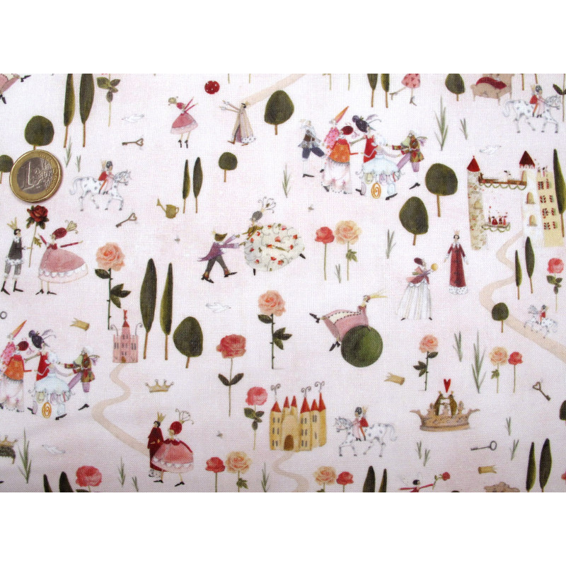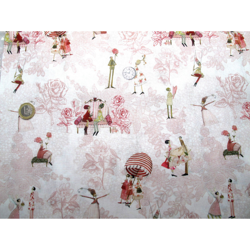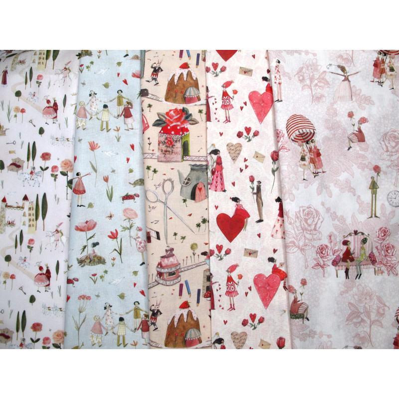 ein Stoffpaket mit 5 wunderschönen Stoffen von acufactum in rot rosa bedruckt mit Herzen, Rosen, Ornamenten, Märchenfiguren, Schlössern... ..... designed von Silke Leffler - perfekt aufeinander abgestimmt -