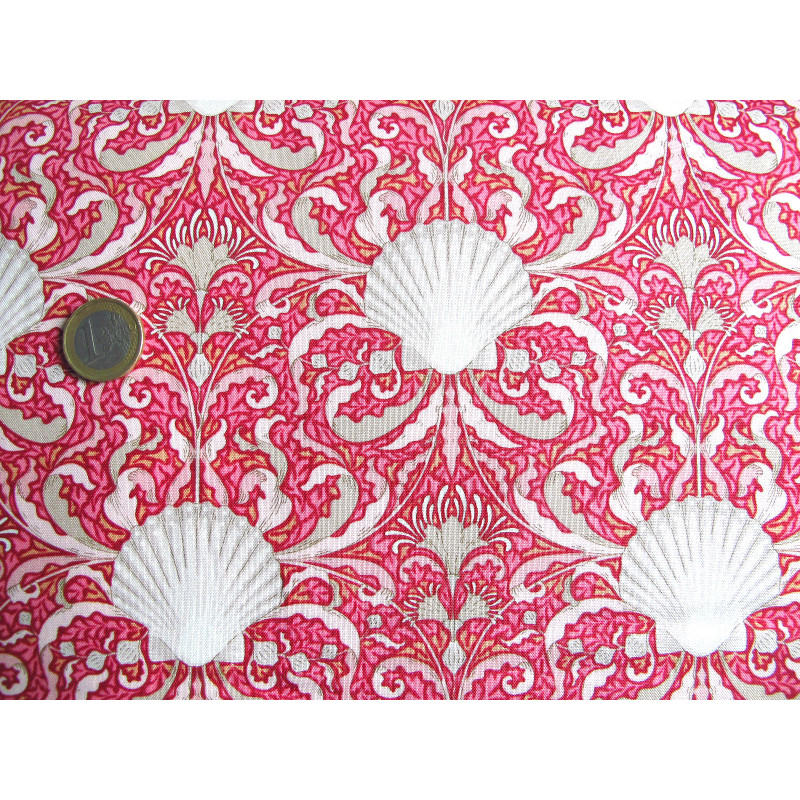 ein Stoffpaket mit 5 wunderschönen romantischen Stoffen in rosa pink bedruckt mit Rosen Blumen Beeren Schrift/ Text und Muscheln - perfekt aufeinander abgestimmt -
