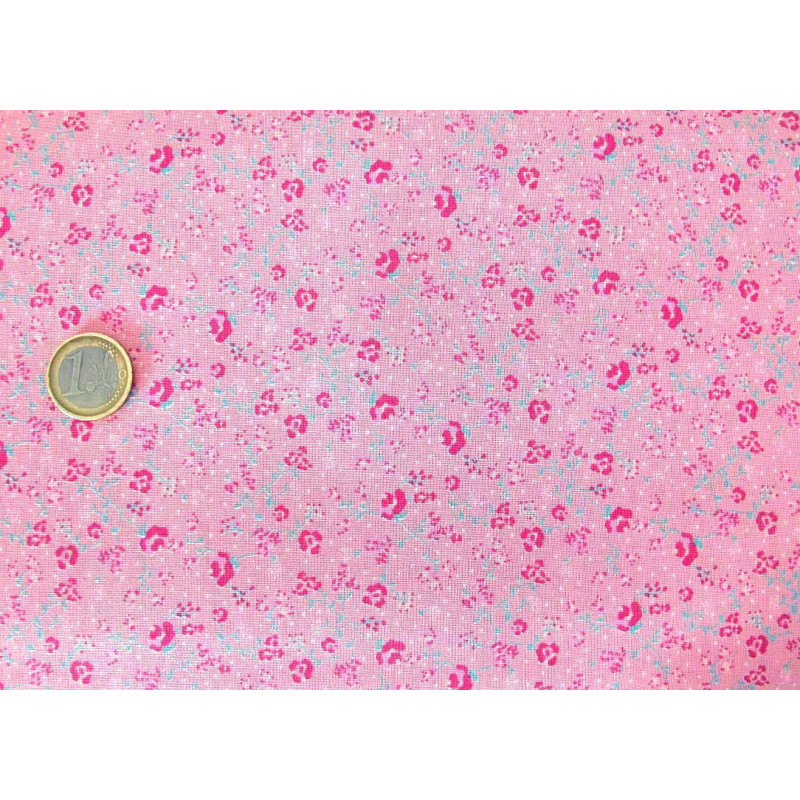 ein wunderschönes Stoffpaket mit Blumendruck in braun rosa rauchblau grün .