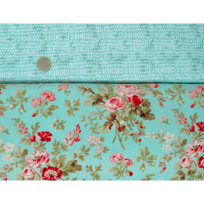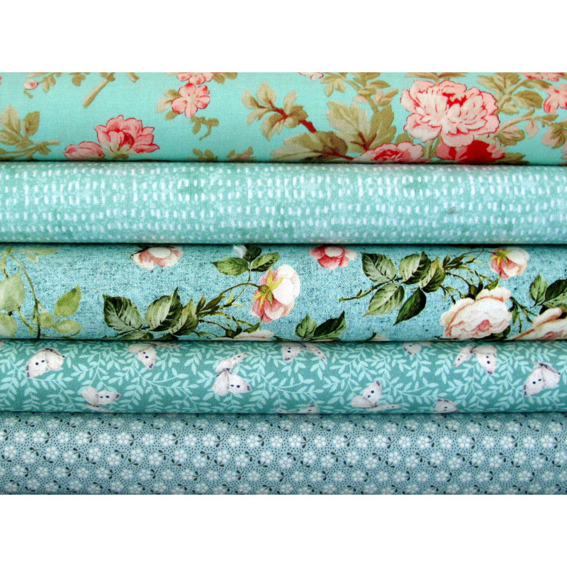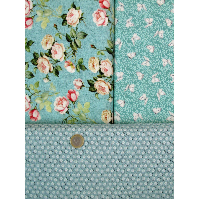 ein Stoffpaket mit 5 wunderschönen Stoffen in türkis/ wässrigem blau, petrol mit Rosen Blumenranken Schmetterlingen... - perfekt aufeinander abgestimmt -