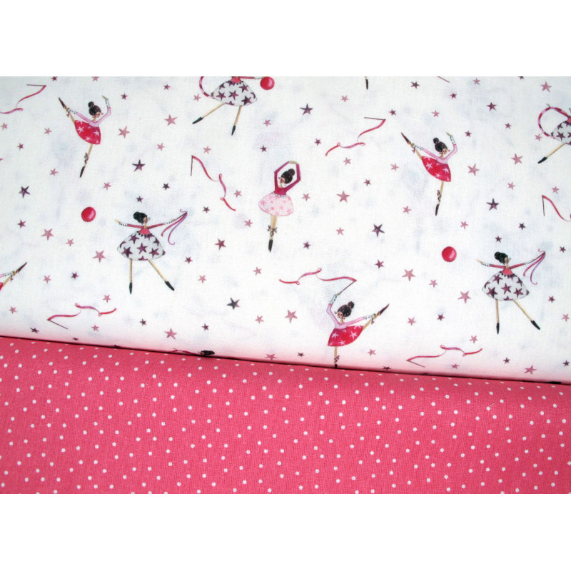 2 hochwertige Baumwollstoffe perfekt aufeinander abgestimmt. Liebevoll und detailreich gezeichnet von Silke Leffler. Kleine Tänzerin zwischen Sternchen und Bällen dazu ein Pünktchenstoff in rosa. Für vielerlei Nähprojekte geeignet - besonders Mädchenherzen schlagen da höher - beide Stoffe von acufactum - zertifiziert nach ÖkoTex Standard 100 und in Europa hergestellt