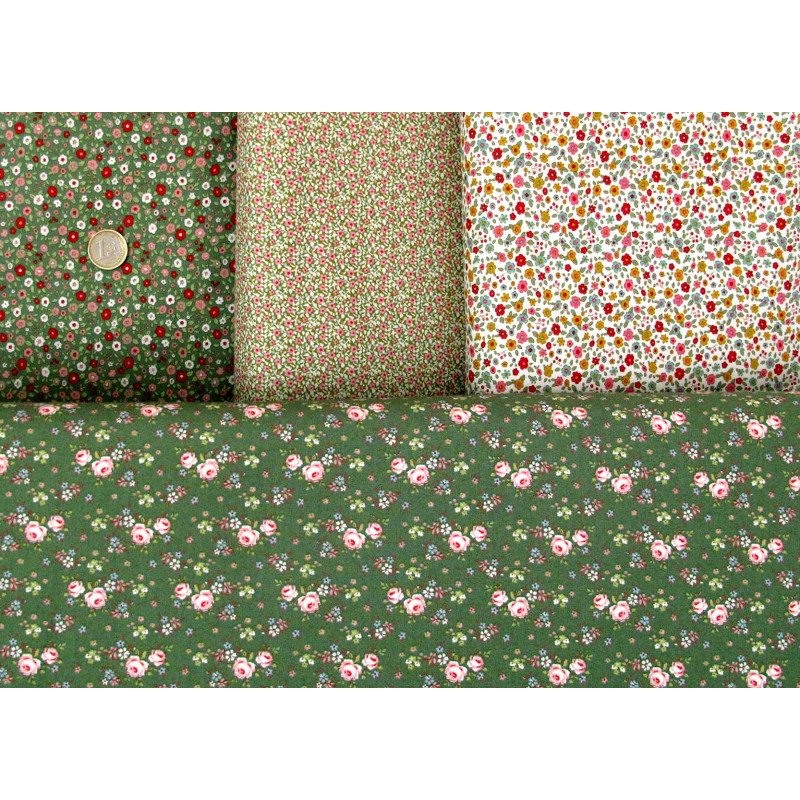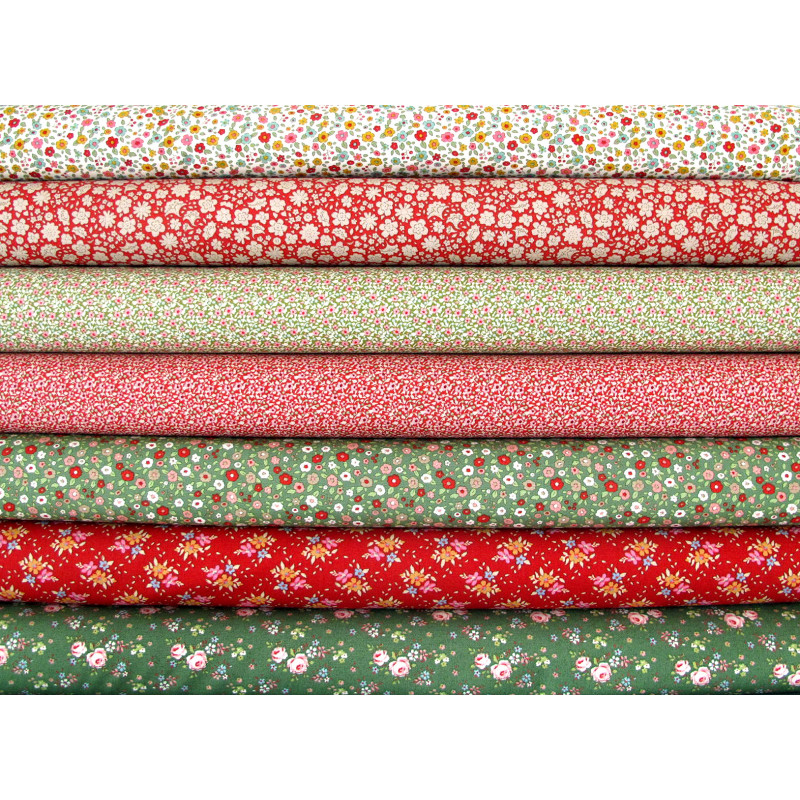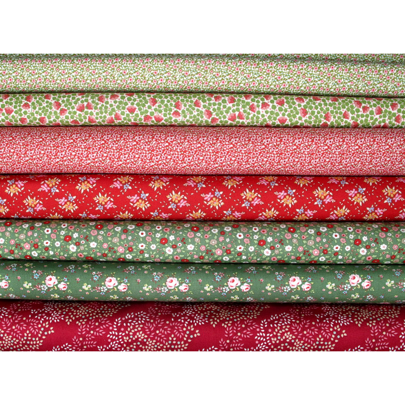 ein wunderschönes Stoffpaket mit kleinen Rosen und Blumen in rot und grün - alle Stoffe aus der Serie Creating Memories - perfekt aufeinander abgestimmt -