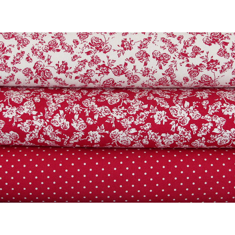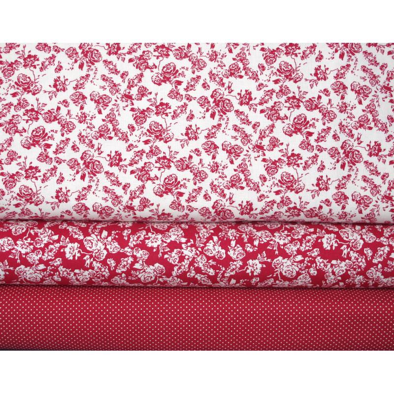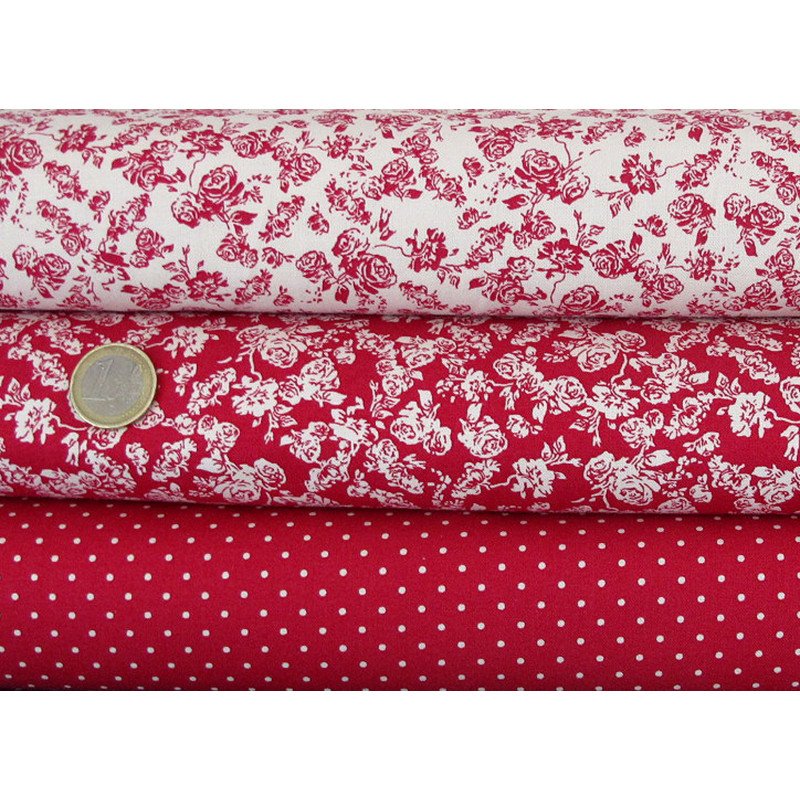 ein prima Stoffpaket mit Baumwollstoffen in rot weiß bedruckt mit Rosen und Punkten - perfekt aufeinander abgestimmt