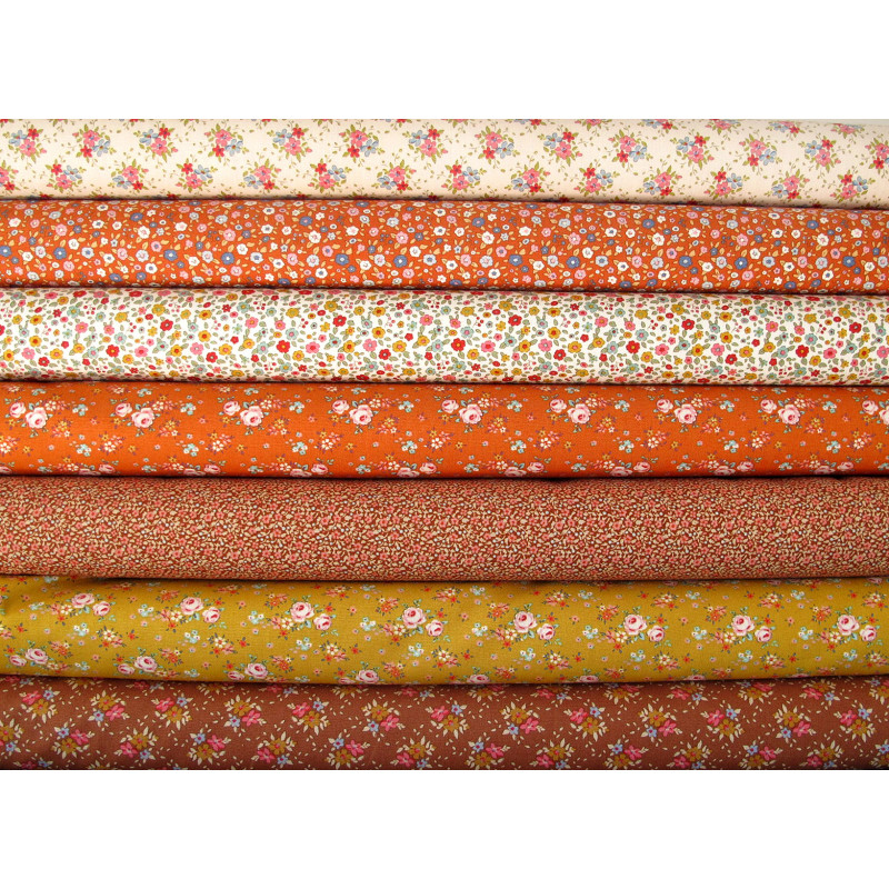 ein wunderschönes Stoffpaket mit Tildastoffen bedruckt mit Rosen Blumen herbstlichen Tönen wie rost, orange, curry - alle Stoffe aus der Serie Creating Memories - perfekt aufeinander abgestimmt -
