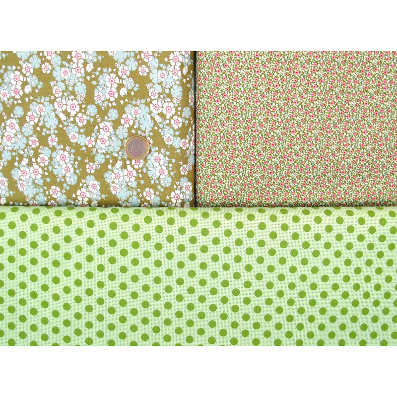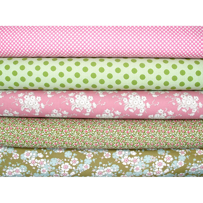 ein wunderschön romantisches Stoffpaket von Tilda mit Blumen und Punkten in rosa pink grün türkis creme - perfekt aufeinander abgestimmt -