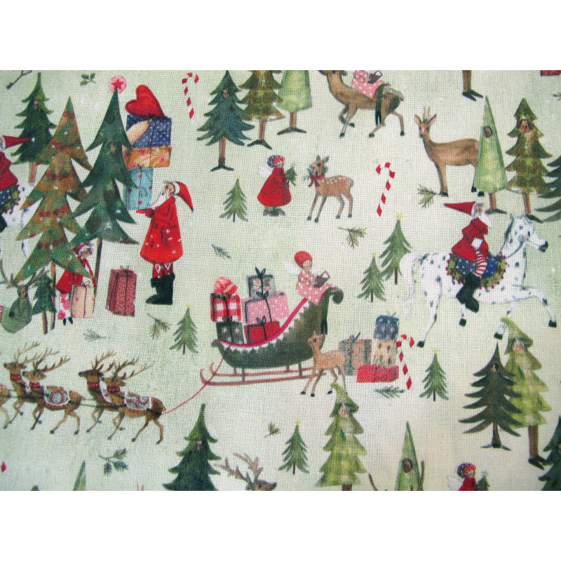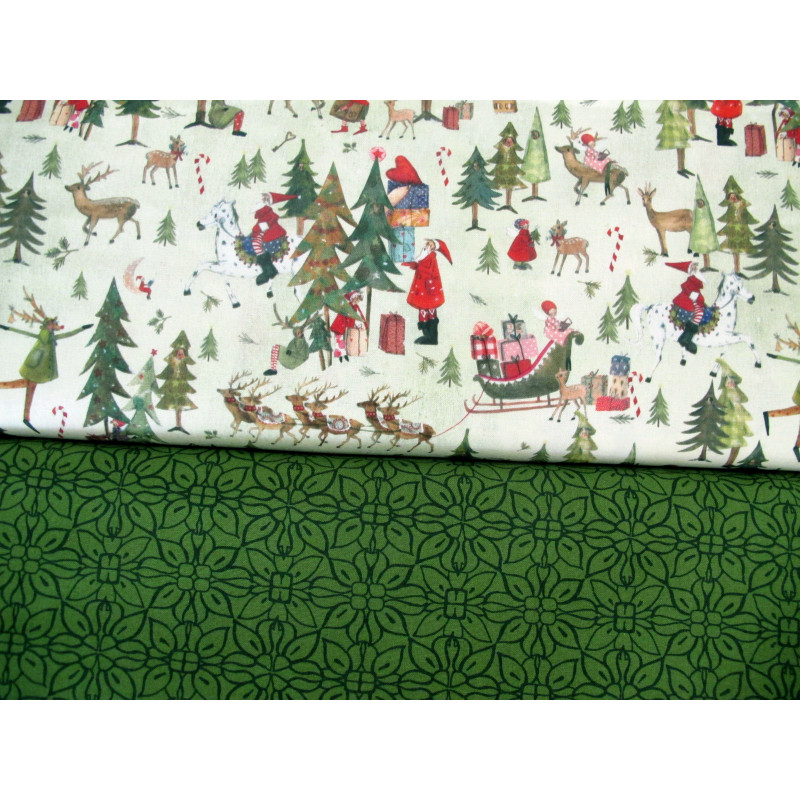 weihnachtlicher Wald mit Nikolaus Tieren Geschenken.......liebevoll und detailreich gezeichnet von Silke Leffler. Dazu ein grüner Stoff mit Ornamenten. Für vielerlei Nähprojekte geeignet. 2 hochwertige Baumwollstoffe perfekt aufeinander abgestimmt.
