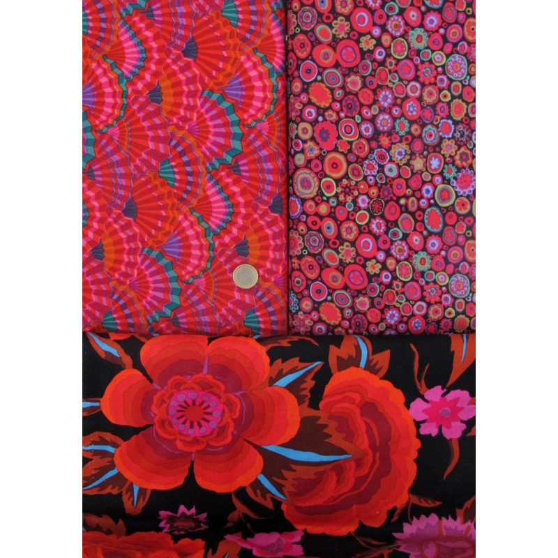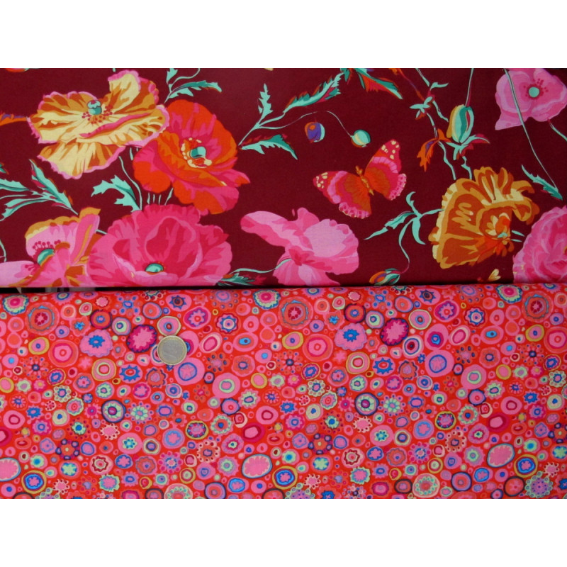 ein Stoffpaket mit 5 wunderschönen Stoffen von Kaffe Fassett in rot, rosa, grün bedruckt mit Blumen, Fächer, Millefiore - perfekt aufeinander abgestimmt -