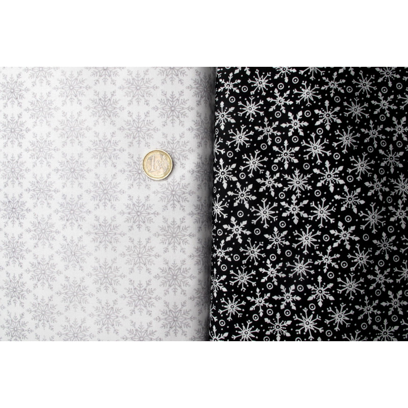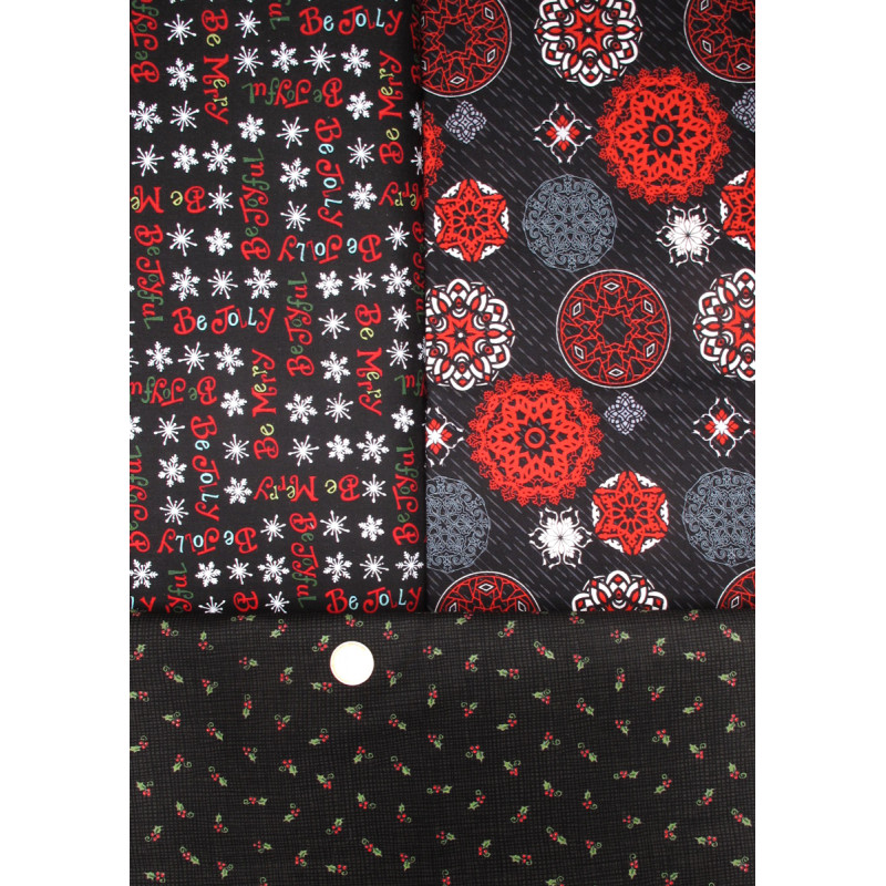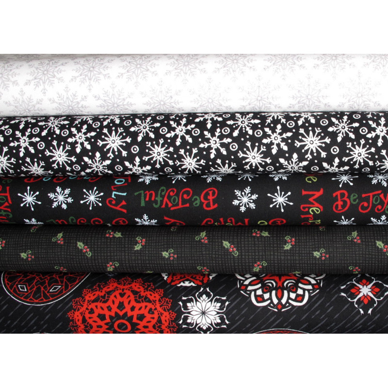 ein Stoffpaket mit 5 tollen weihnachtlichen Stoffen in rot grau weiß schwarz bedruckt mit Ilex und Eiskristallen oder Schneeflocken - perfekt aufeinander abgestimmt -