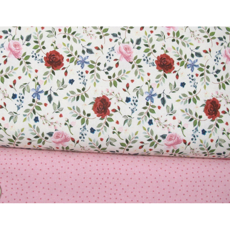 ein herrliches Stoffpaket mit Rosen und Blättern dazu Pünktchen - beide Stoffe von Westfalenstoffe - zertifiziert nach ÖkoTex Standard 100 und in Europa hergestellt
