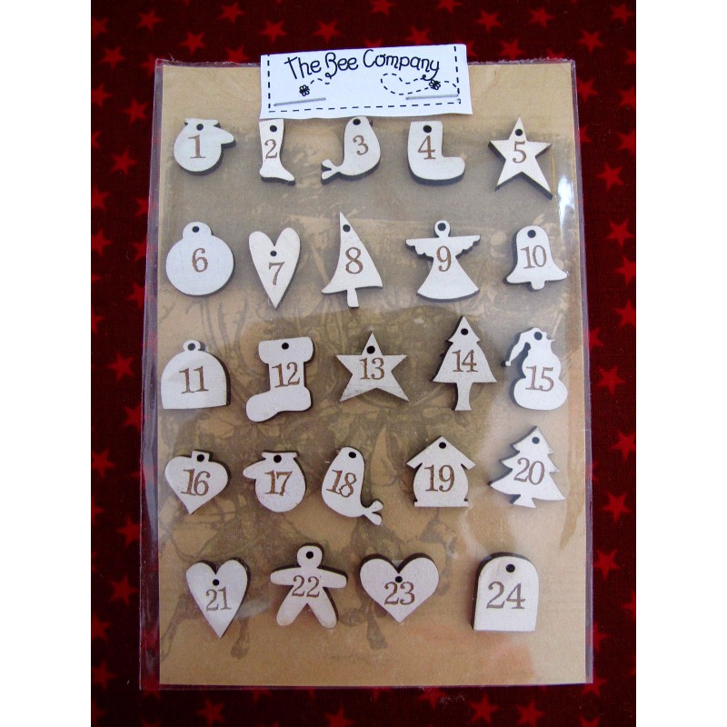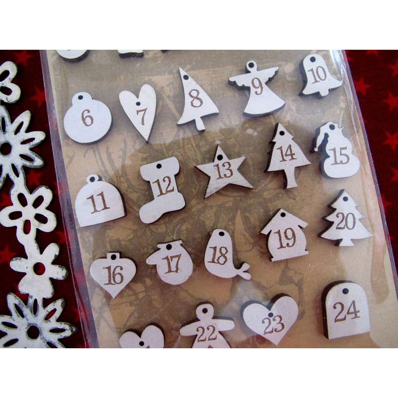 Die Adventskalenderzahlen sind unterschiedlich groß. Der Nikolausstiefe. ist z.B. 16 x 19 mm hoch. Das Herzchen 12 x 20 mm. Von Bee Company, ganz liebevoll verziert.