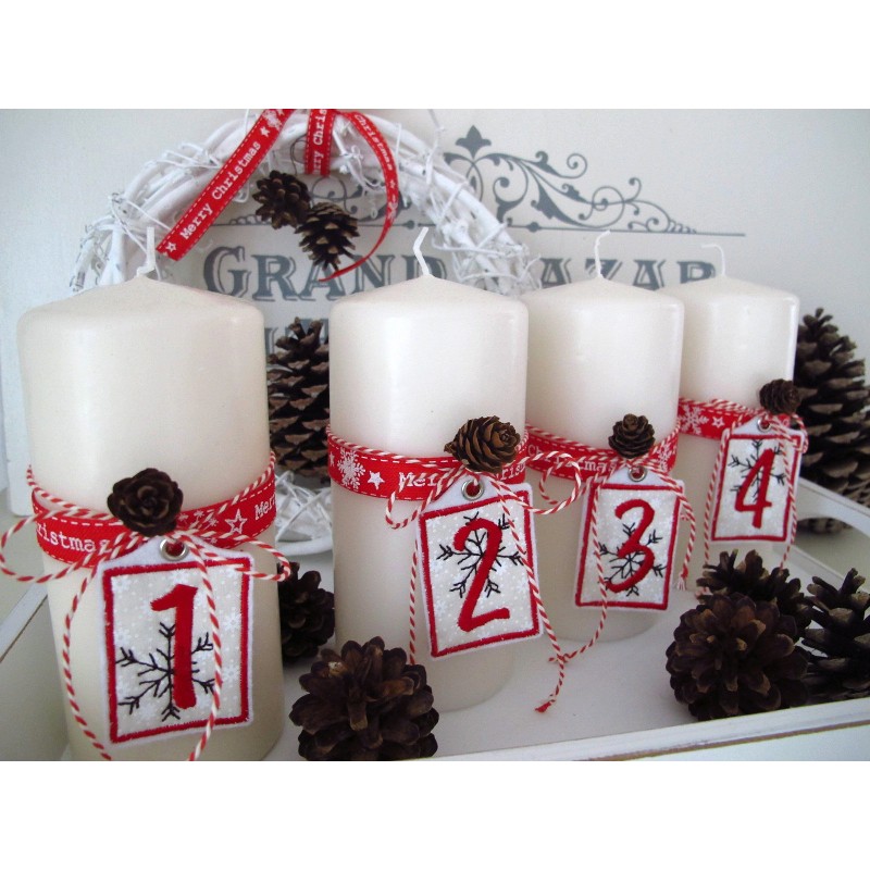 Sehr dekorative wunderschön bestickte Adventsanhänger für den Kranz, ein Gesteck oder auch Gläser. Sie wurden mit viel Liebe zum Detail gefertigt und verzaubern weihnachtliche Arrangements