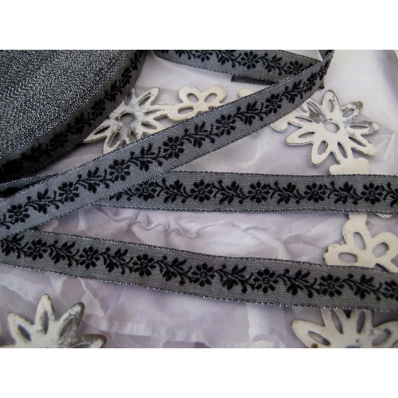 Dieses ganz entzückende Webband mit Blumenranken in schwarz auf grau anthrazit - kommt aus der Bandweberei Kafka, Wuppertal. Es ist 10mm breit und aus 100 % Baumwolle (Schuss) und 100 % Polyester (Kette - dadurch strapazierfähiger)