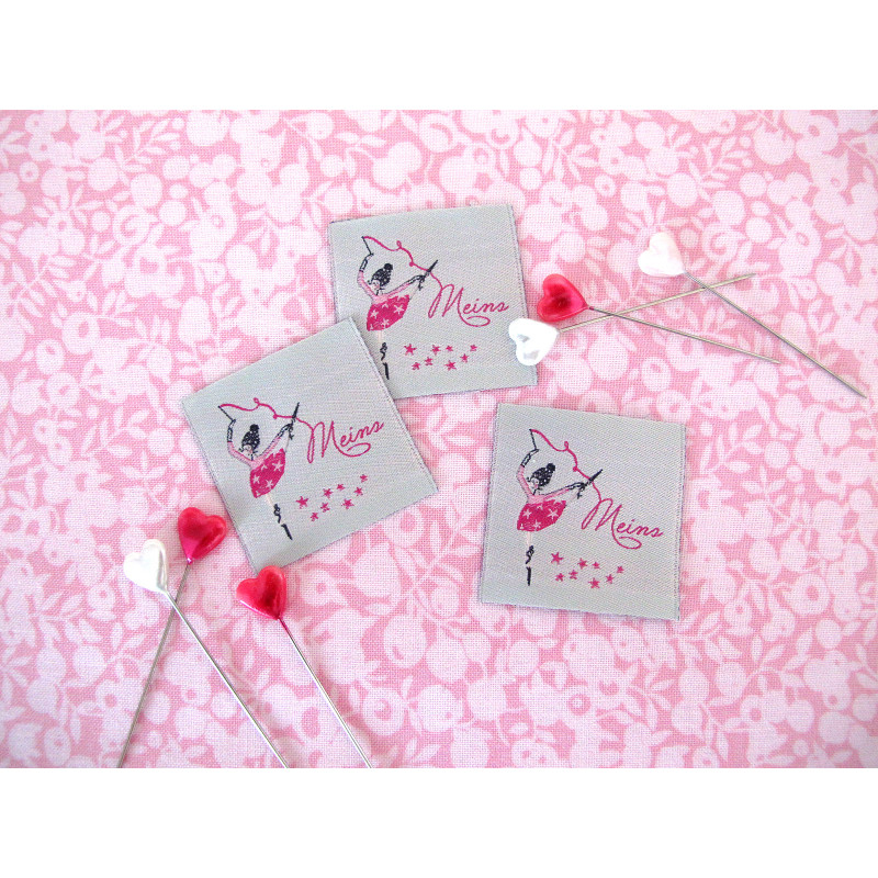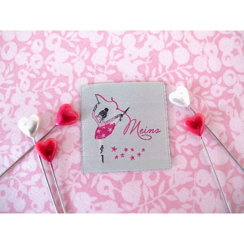 Tänzerin in pink auf silbergrau neben dem Text "Meins" . Richtig hübsch für Kleidung, Accessoires, Geschenkverpackungen, Anhänger und vieles mehr. Set mit 3 Stück 100 % Polyester ohne Endfalte nicht heiß bügeln