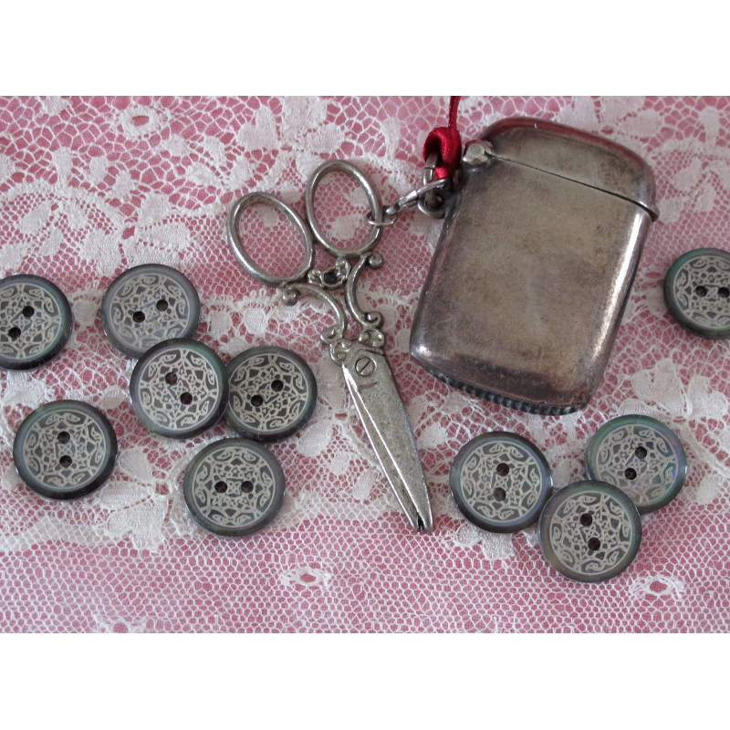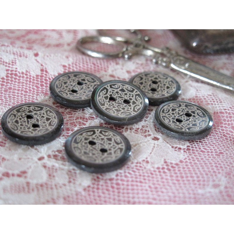 1 echter Perlmuttknopf 15mm Durchmesser in anthrazitAngeboten wird 1 wunderschön romantischer Zierknopf aus Perlmutt in anthrazit mit fein ziselierter Lasergravur. Ein Naturprodukt mit leichten Abweichungen. Perlmutter zertifiziert nach GOTS. Passt perfekt zum Shabby Stilauch ein echter Hingucker an Kleidung, Taschen, Kappen, Kissen......