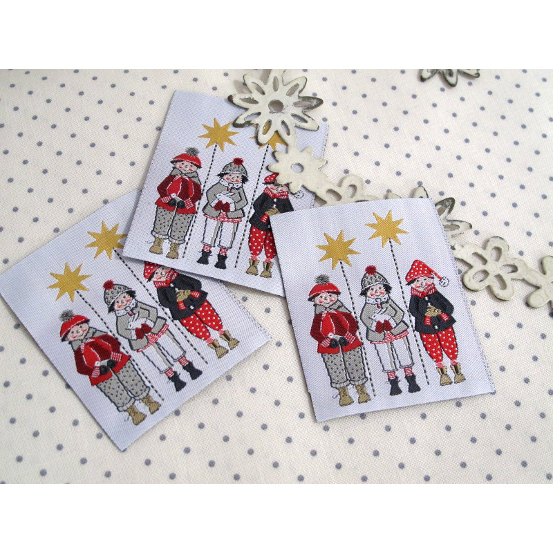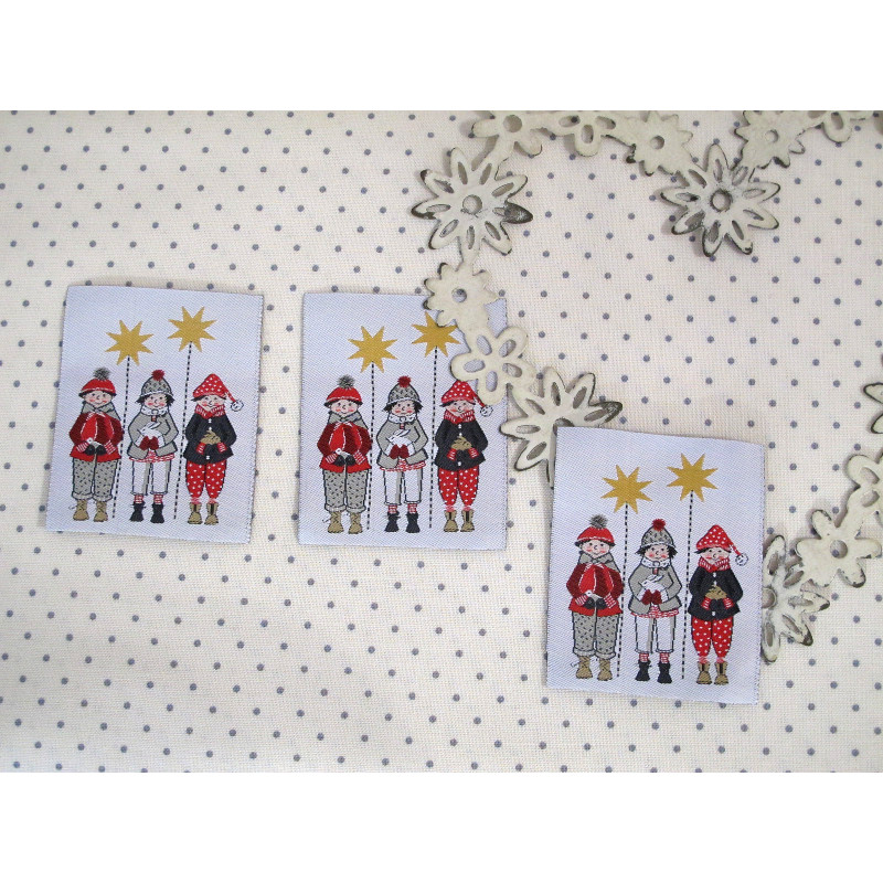 drei Kinder mit Pudelmütze und Häschen im Arm mit Sternen - vielleicht die Sternsinger. Ein richtiger Hingucker für winterliche Nähprojekte. Für Kleidung, Accessoires, Geschenkverpackungen, Anhänger und vieles mehr