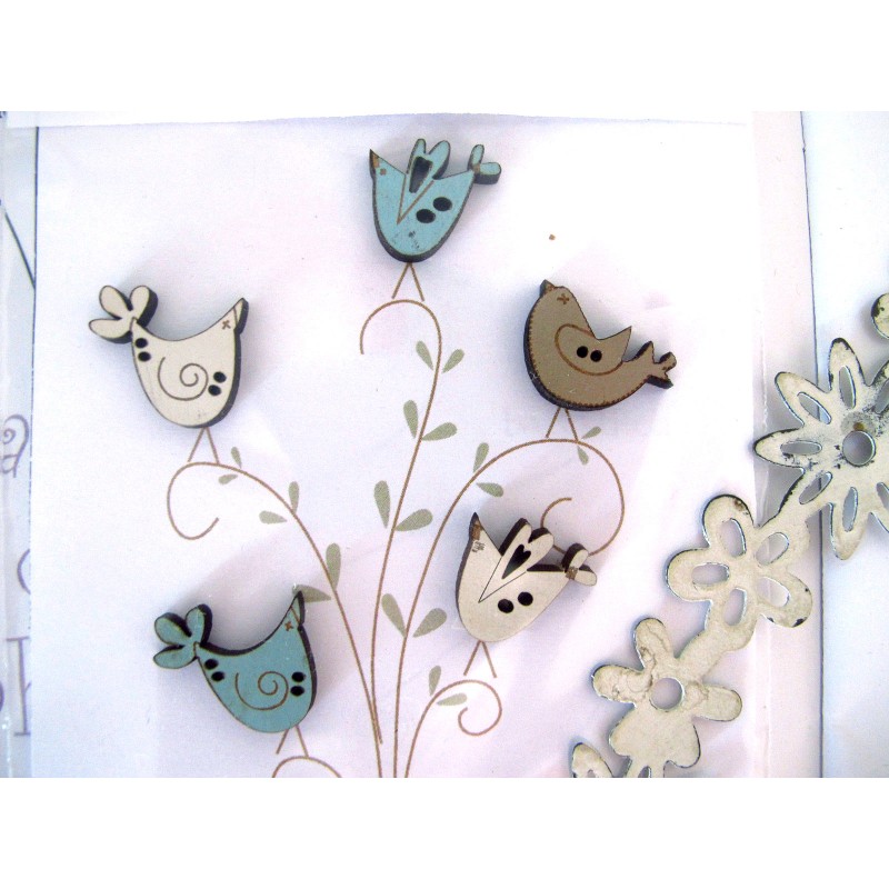 Holzknöpfe Vögeln in creme beige türkis