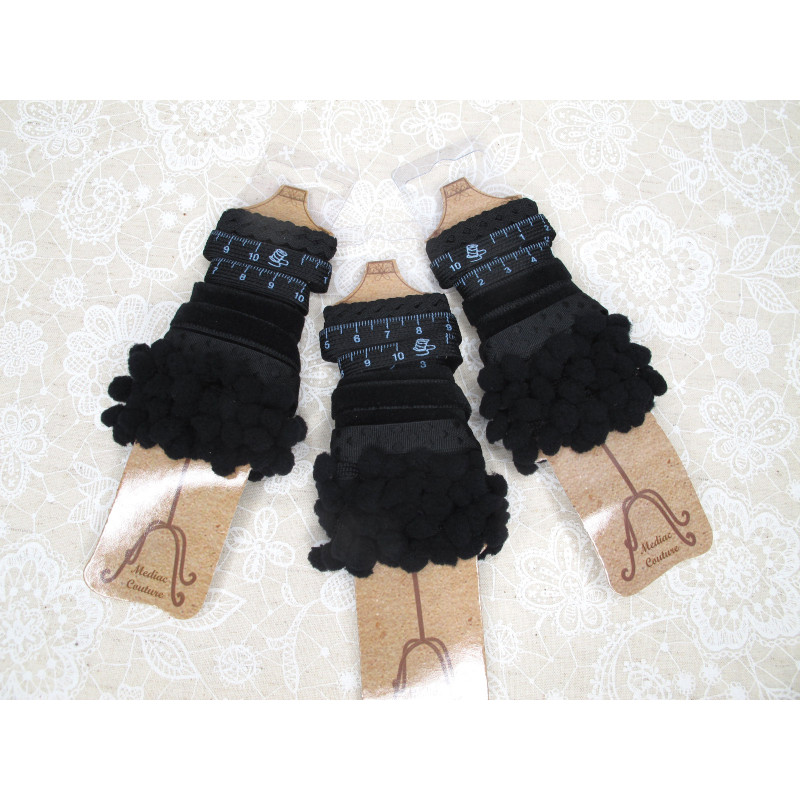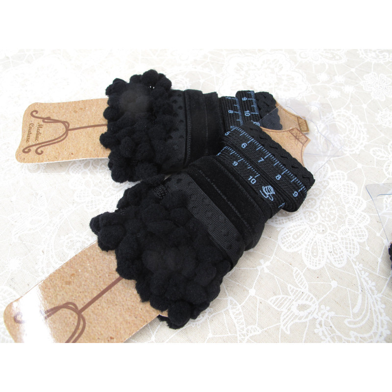 verspielt und äußerst hübsch aufgewickelt. 5 verschiedene Borten auf einer Papp-Schneiderpuppe. Einfach herzallerliebst und bestimmt eine nette Überraschung für einen lieben Menschen. 5 Borten in schwarz jeweils 1 m