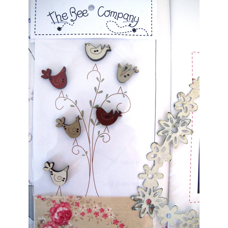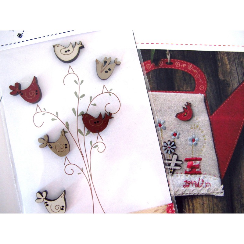Angeboten wird ein Päckchen mit 6 Knöpfen Vögel in creme beige rot von The Bee Company. Die Vögel sind ca. 18 x 20 mm . Alles aus Holz und sehr liebevoll und detailreich gearbeitet